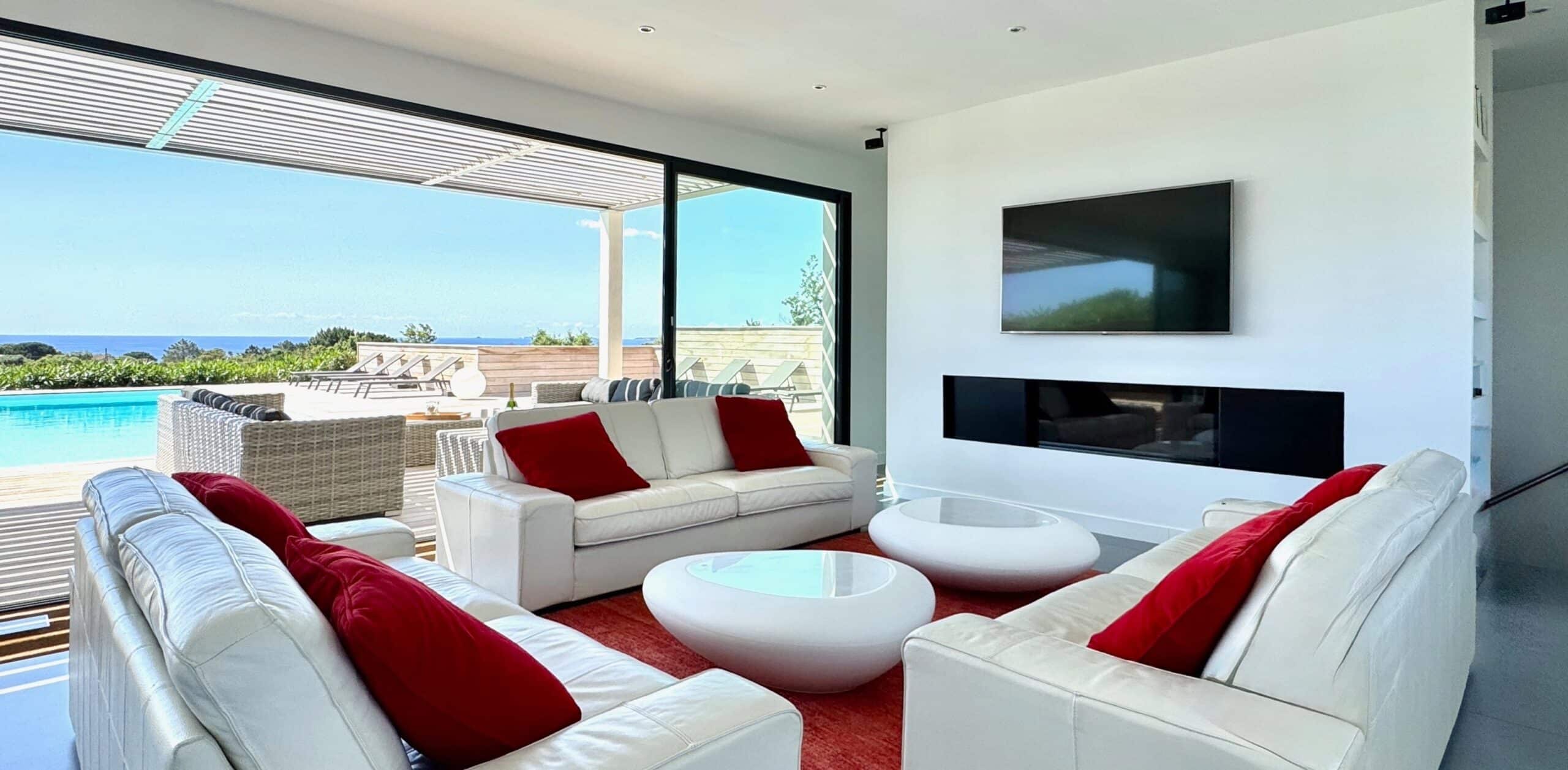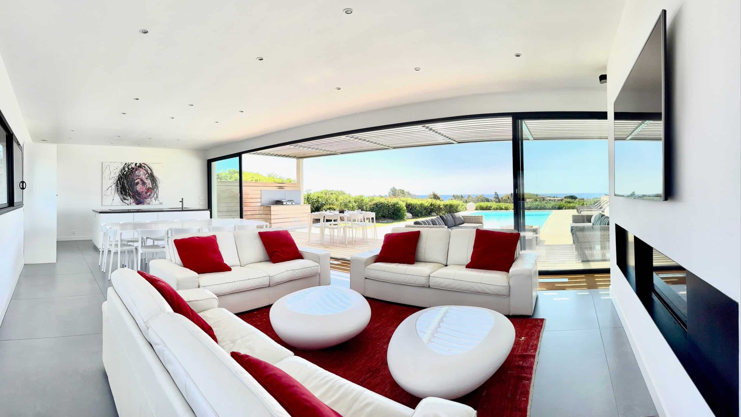 Les 12 mètres de baie vitrée offre une luminosité incomparable que vous soyez dans le salon ou la cuisine.