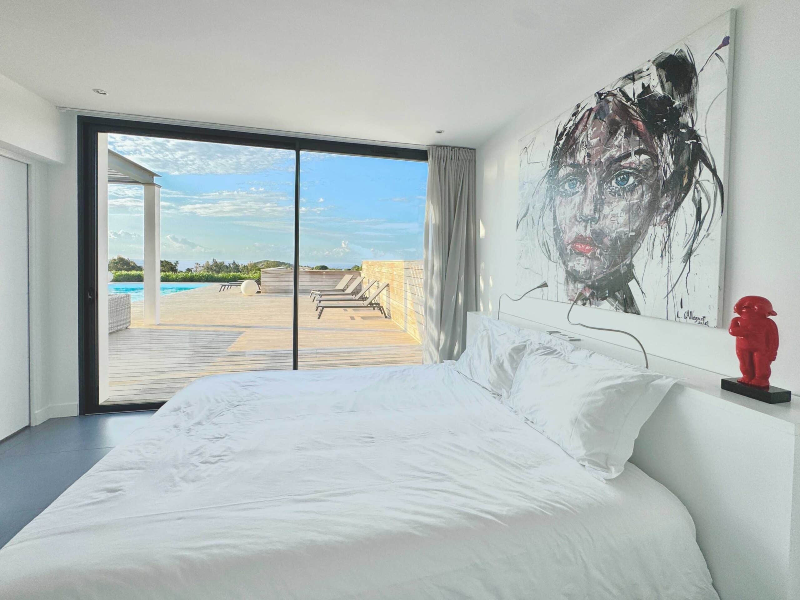 Une suite parentale à l’étage avec vue mer avec un lit double (160cm), salle de bain avec douche et baignoire, WC séparé.